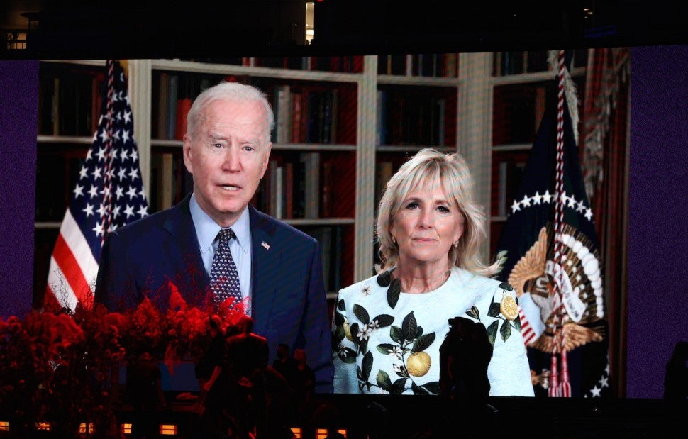 Like Meghan Markle and Pope Francis, the president of the United States and the first lady also appeared at the event via video message, telling the crowd, "We know just how difficult the last year has been, we really do."