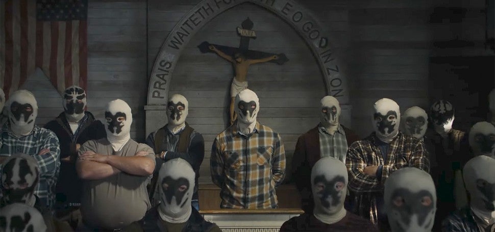 On the show, the "Seventh Kavalry" refers to the group of extremists and vigilantes -- not very dissimilar to the Ku Klux Klan -- which has re-emerged years after the White Night assault on the police with a new goal of domestic terrorism. They, too, wear masks -- homemade versions of the one Rorschach wore in the original graphic novel. After one of the members attacks a police officer during a routine traffic stop, the Tulsa detectives are alerted by pager with the code words, “Little Bighorn.”