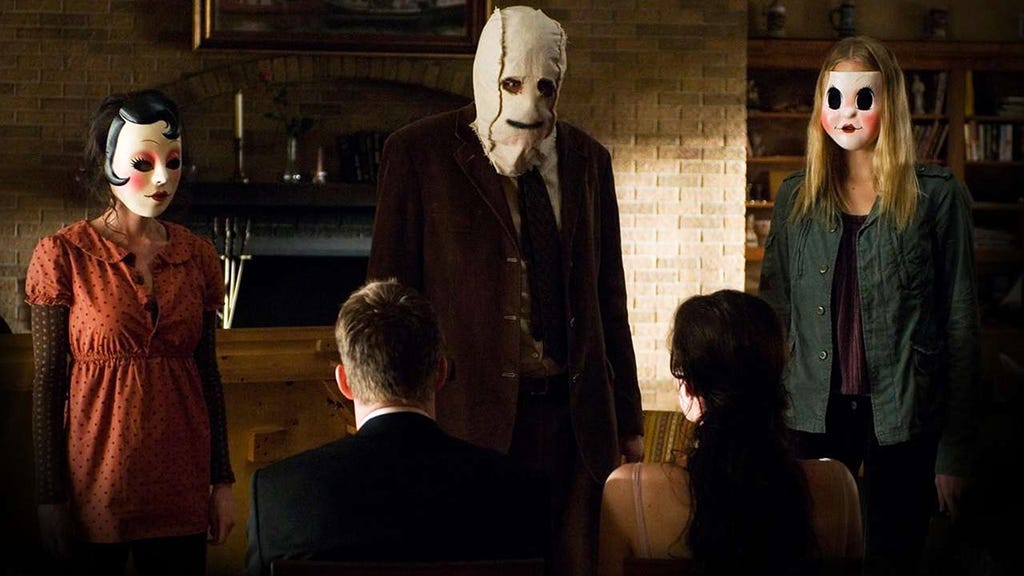 Look no further than the iconic dialogue explaining the strangers’ motive, or lack thereof:
