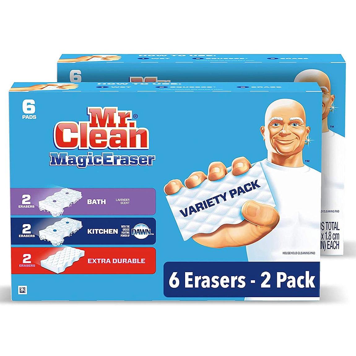 These Mr. Clean Magic Erasers really are like magic. Simply wet them and be amazed when scuffs and marks vanish before your eyes. This variety pack includes the new Magic Eraser varieties: Ultra Thick and Ultra Foamy.