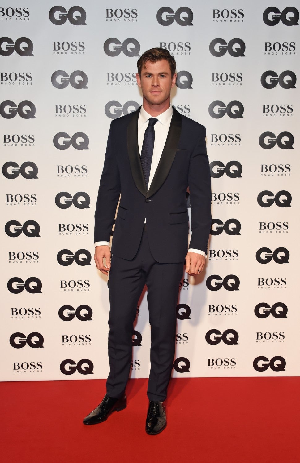 The men didn't hold back with their fashion. Chris Hemsworth looked ever-so-dapper in a navy suit with black lapels, a white button-up and a matching navy tie.